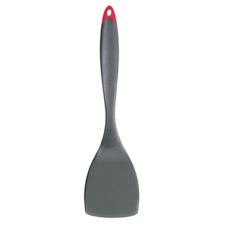 The Browne Foodservice 7112302 Cuisipro Turner is a precision-crafted kitchen tool with a blade measuring 3-1/2 inches by 2-15/16 inches, and an overall length of 11-1/2 inches. This turner is designed for high-heat applications, with a heat resistance capability of up to 480°F (250°C), making it suitable for demanding cooking environments. The turner is equipped with a red hanging loop, facilitating easy storage and accessibility in busy kitchens. Constructed from durable fiberglass, the black Cuisipro Turner is engineered for longevity and performance under frequent use, ensuring it meets the rigorous standards of both professional chefs and home cooking enthusiasts. Its compact and highly functional design makes it an ideal choice for a variety of culinary applications, from flipping delicate fish fillets to handling robust cuts of meat. The professional-grade construction ensures this tool maintains its integrity and functionality over time, providing exceptional value for foodservice operations that demand reliability and efficiency in their kitchen tools. The Browne Foodservice 7112302 Cuisipro Turner, with its blend of heat resistance, ergonomic design, and durable materials, stands out as an essential component in any culinary setting, offering precision and control to enhance cooking techniques across different market segments within the foodservice industry.