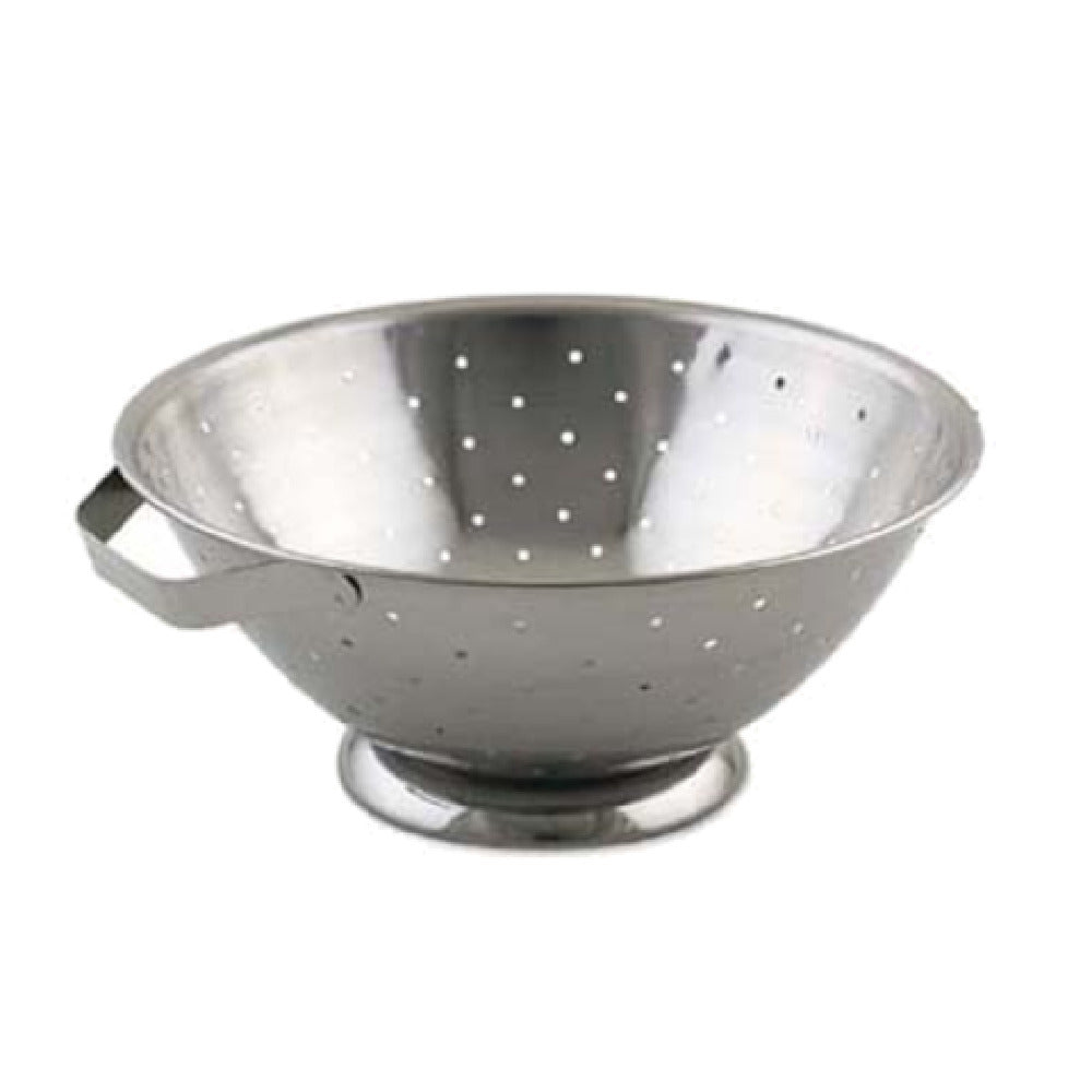 The Browne Foodservice 746110 Colander 8 Qt. 13" Dia. is a well-crafted kitchen essential that meets the demands of both commercial and residential kitchens. With its 8-quart capacity and 13-inch diameter, this colander is spacious enough to handle large volumes of food, making it ideal for busy food service environments. The colander features a footed design, allowing for efficient draining without the need for additional support. The inclusion of handles adds to its practicality, offering a secure grip during use. Constructed from durable stainless steel and boasting a 0.4 mm thickness, the colander promises longevity and resistance to wear and tear, even with frequent use. Its mirror finish adds a touch of elegance, enhancing its appeal in professional kitchen settings. The Browne Foodservice 746110 Colander is a versatile tool, suitable for various applications from rinsing vegetables to draining pasta, making it a valuable addition to culinary operations. Its combination of robust design and practical features ensures it meets the rigorous demands of the foodservice industry, while also being a reliable choice for home cooks seeking professional-grade kitchenware. This colander stands out with its superior craftsmanship and functional design, catering to diverse market segments within the industry.