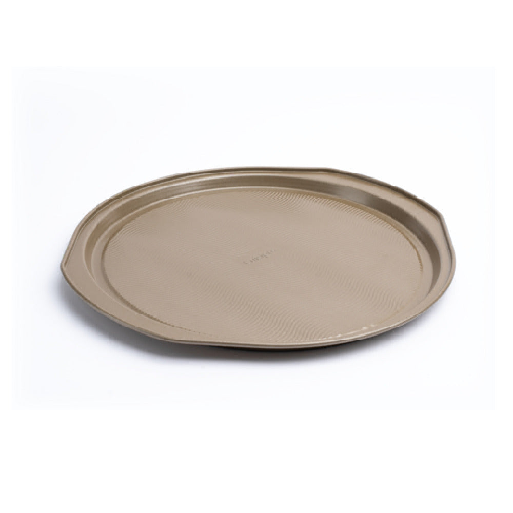 The Browne Foodservice 746274 CUISIPRO Pizza Pan 14x13x0.5" / 35.75x33.25x1.25cm is a versatile kitchen tool designed to meet diverse culinary needs. Constructed from thick carbon steel, this pan is engineered for durability and optimal heat distribution, making it an essential addition for both professional chefs and home cooks. The two-layer non-stick coating ensures effortless food release and quick cleaning, enhancing the cooking experience. A unique feature of this pizza pan is its textured wave bottom, which increases airflow beneath the crust, promoting even baking for superior results. The straight side walls of the pan allow for easy removal of baked goods without compromising their integrity. Notably, this product is PFOA free, adhering to health and safety standards. With heat resistance up to 500 F/260 C, it is versatile for various baking temperatures. Although dishwasher safe, handwashing is preferred to maintain the pan's longevity. The Browne Foodservice 746274 CUISIPRO Pizza Pan is an ideal choice for pizza enthusiasts and professionals seeking reliable performance and quality. Its thoughtful design and robust construction make it a valuable asset in any kitchen, offering an optimal baking experience for a range of culinary applications.