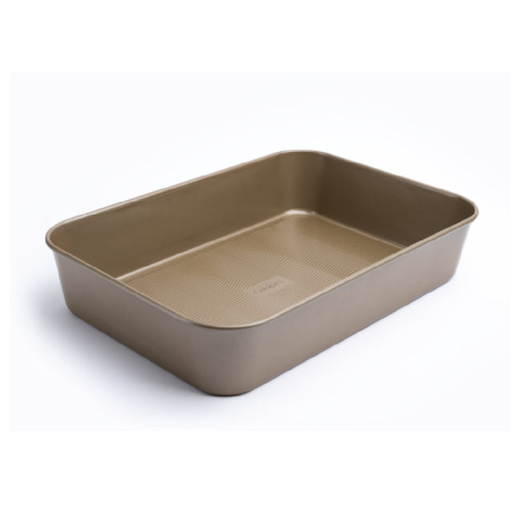 The Browne Foodservice 746281 CUISIPRO Roaster Large 15.5x11x3"/ 40x28x7.5cm is a versatile kitchen tool designed for culinary professionals and home chefs alike. This roaster is constructed from 0.8mm thick carbon steel, providing durability and efficient heat distribution. The two-layer non-stick coating ensures easy food release and cleaning, while its textured wave bottom enhances airflow for evenly cooked dishes. The design includes straight side walls to facilitate easy removal of contents, a feature appreciated in fast-paced kitchen environments. Notably, the CUISIPRO Roaster is PFOA free, aligning with health-conscious cooking standards. It is heat resistant up to 500 F/260 C, making it suitable for a wide range of cooking applications. While it is dishwasher safe for convenience, hand washing is preferred to maintain its non-stick properties. This roaster meets the demands of various market segments within the foodservice industry, from large-scale catering services seeking robust equipment to gourmet enthusiasts looking for reliable kitchenware. Its thoughtful engineering and practical features make it a valuable asset for roasting tasks, ensuring perfectly cooked meals with minimal effort.