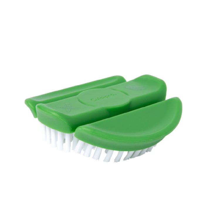 The Browne Foodservice 747313 CUISIPRO Vegetable Brush is a versatile cleaning tool designed for efficiency and comfort in the kitchen. With dimensions of 3.4 inches in length, width, and a height of 1.12 inches, it is compact and easy to handle. Its unique three-section design allows the brush to gently flex in the hand, enhancing usability and providing a comfortable grip. This vegetable brush is equipped with stiff bristles, ensuring a thorough cleaning of even the most stubborn dirt and residues from produce. The ergonomic handle further adds to the ease of use, minimizing hand fatigue during extended cleaning sessions. Constructed to withstand the rigors of frequent use, the brush is dishwasher safe, making it easy to maintain and ensuring it remains hygienic. The Browne Foodservice 747313 CUISIPRO Vegetable Brush is an ideal choice for both home kitchens and professional foodservice environments, where effective and efficient cleaning tools are essential to maintaining high standards of food preparation. Its thoughtful design and durable construction make it a valuable addition for anyone seeking reliable performance in a vegetable cleaning brush.