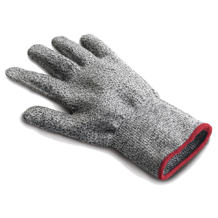 The Browne Foodservice 747329 Cuisipro Cut Resistant Glove - One Size Fits Most is a versatile and essential protective accessory designed for various foodservice environments. This glove is fabricated from durable nylon, showcasing a distinctive gray and red color scheme that enhances visibility and ensures a snug, comfortable fit. Its "one size fits most" design accommodates a wide range of hand sizes, making it an ideal choice for diverse staff members in commercial kitchens, restaurants, and catering services. Engineered to provide a high level of cut resistance, this glove is an invaluable tool for professionals who handle sharp instruments daily, such as chefs and kitchen staff. Its ergonomic design allows for dexterity and precision, enabling users to perform tasks efficiently without compromising safety. The glove's material composition emphasizes both safety and comfort, ensuring that employees can focus on their tasks with confidence. By integrating the Browne Foodservice 747329 Cuisipro Cut Resistant Glove into your operation, you are investing in both the safety and productivity of your team, making it a critical asset in maintaining high standards in food preparation. With its practical and thoughtful design, this glove is a reliable choice for anyone needing reliable hand protection in the foodservice industry.