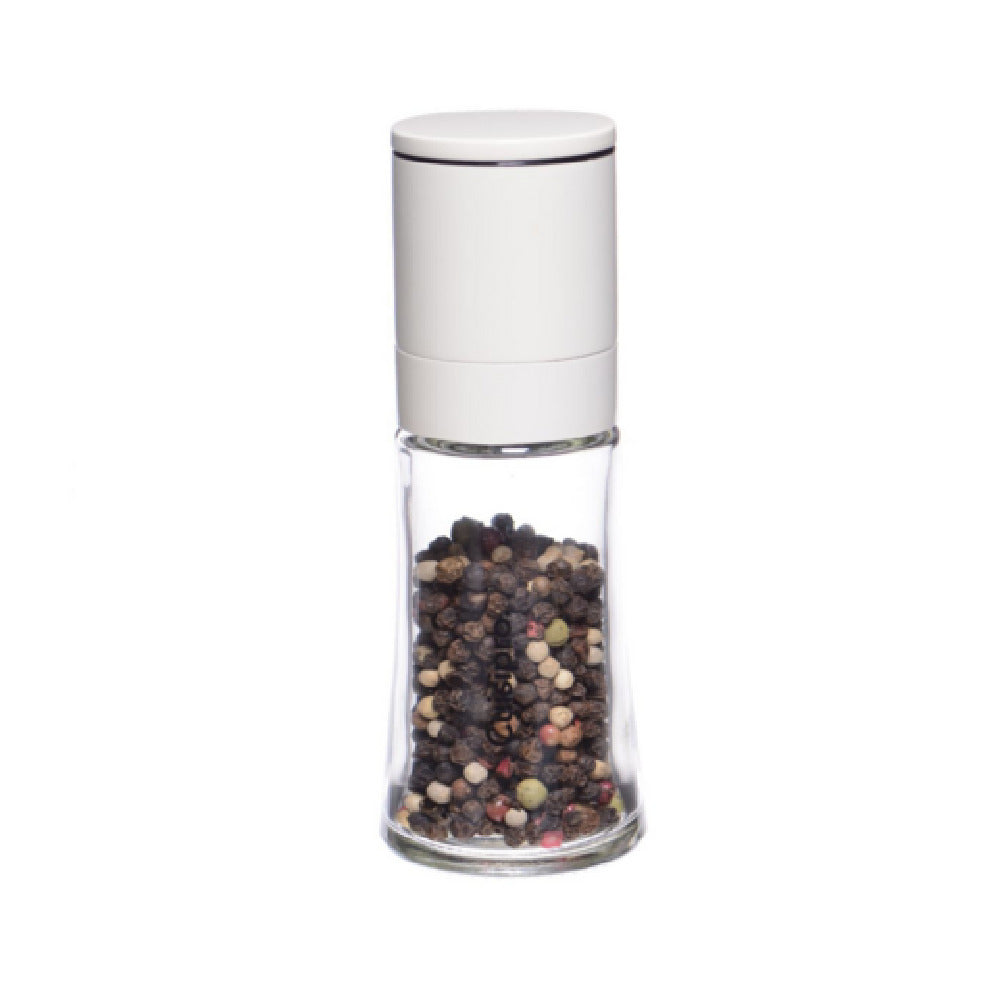 The Browne Foodservice 74783101 CUISIPRO Grinder White is a compact and efficient kitchen tool, measuring 5.25 inches (13.5 cm) in height and featuring dimensions of 2 inches in length, 2 inches in width, and 5 inches in height. With a capacity of 65 ml (2.29 oz), this grinder is designed to fit seamlessly into various culinary settings. It is equipped with a ceramic grinding mechanism, ensuring durability and precision in grinding tasks. The grinder's construction includes a glass container complemented by a stainless steel shaft, enhancing its aesthetic appeal and structural integrity. The snap on/off cap feature offers convenience and ease of use, making it suitable for both professional and home kitchens. With four distinct grinding levels, users can achieve their desired coarseness, catering to diverse culinary preferences. Its wipe-to-clean design ensures simple maintenance, promoting hygiene and efficiency. The Browne Foodservice CUISIPRO Grinder is a versatile tool, providing unique value to chefs and home cooks alike, who prioritize quality and adaptability in their kitchen equipment.