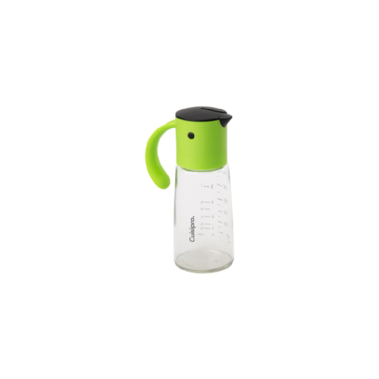 The Browne Foodservice 74783204 CUISIPRO Oil & Vinegar Dispenser is a refined kitchen accessory designed for precision and efficiency. With a 300ml/10oz capacity, it is perfectly sized for both personal and professional culinary environments. Measuring 4.4 inches in length, 2.8 inches in width, and 7.5 inches in height, this dispenser boasts a sleek and compact design that fits effortlessly into any space. The automatic gravity lid-spout is a standout feature, ensuring seamless, spill-free pouring, and making it highly convenient for fast-paced kitchens. The non-porous glazed glass construction guarantees the purity of your condiments, preventing flavor contamination and maintaining the integrity of oils, vinegars, soy sauce, as well as non-viscous salad dressings and sauces. Complementing the glass body, a stainless steel spout adds a touch of modern elegance while ensuring durability and resistance to corrosion. While it is recommended for handwashing only, the Browne Foodservice CUISIPRO Dispenser's robust construction assures lasting performance, making it a valuable asset for gourmet chefs and home cooks alike. Available in Geen, this dispenser not only enhances functionality but also adds a touch of style to your dining setup. Whether for personal use or in a bustling foodservice establishment, this dispenser meets a variety of needs with sophistication and practicality.