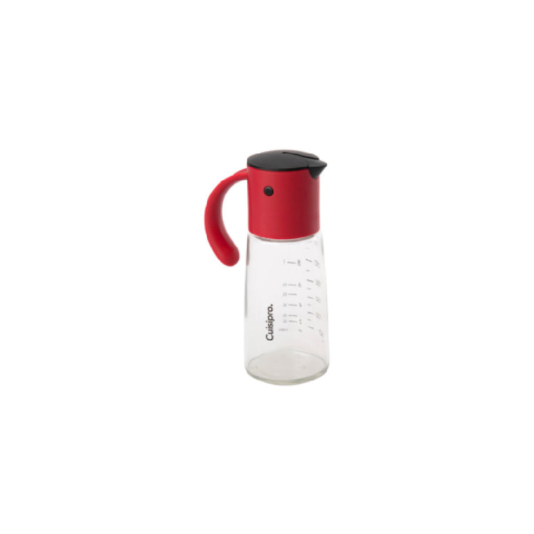 The Browne Foodservice 74783205 CUISIPRO Oil & Vinegar Dispenser is a meticulously crafted product featuring a 300ml/10oz capacity. Its dimensions - 4.4" L x 2.8" W x 7.5" H - make it a compact yet versatile addition to any kitchen or dining setting. This dispenser is designed with an automatic gravity lid-spout, which ensures ease of use and precision in pouring. Constructed from non-porous glazed glass, the dispenser prevents absorption of flavors, maintaining the purity of its contents. The stainless steel spout adds a touch of modern elegance and durability, suitable for both home and professional environments. While it is handwash only, this feature ensures the longevity of the product. The dispenser is versatile in its application, accommodating oil, vinegar, soy sauce, and non-viscous salad dressings and sauces. Its red color makes it a visually appealing piece that can complement a range of decors. Designed for the foodservice industry yet perfect for home use, this dispenser combines practicality with style, providing an exceptional solution for storing and serving liquid condiments. This product is ideal for gourmet chefs, restaurant kitchens, and households seeking a reliable and aesthetically pleasing condiment dispenser.