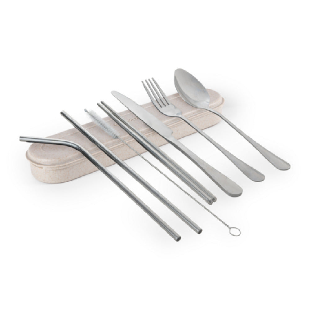 - Includes bent straw, straight straw, spoon, fork, knife, chopsticks
