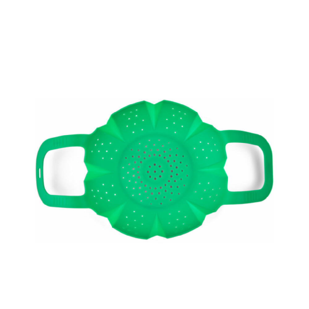 The Browne Foodservice 74792004 CUISIPRO Vegetable Steamer is an adaptable steaming solution designed for diverse culinary environments, measuring 16x9x3"/41.7x23x7.5cm. This versatile kitchen tool is compatible with pressure cookers, slow cookers, and stove top pots, offering a universal fit for 6 QT and 8 QT pressure cookers. Its flexible design accommodates pots 9"/23 cm or wider, making it suitable for a range of cooking setups. The vegetable steamer is crafted from food-grade silicone, ensuring safety and durability, while its heat-resistant handles provide a secure grip during use. It features a locking clip to keep it securely in place, enhancing its usability. The non-stick silicone construction facilitates easy cleaning, and it is dishwasher safe, adding convenience to its list of attributes. With its vibrant green color, the Browne Foodservice CUISIPRO Vegetable Steamer not only ensures efficient steaming but also adds a touch of modernity to any kitchen aesthetic. This product is particularly valuable for professional chefs and home cooks who seek a reliable and multifunctional steaming accessory that adapts to various cooking apparatus, ensuring optimal performance and ease of use in both commercial and domestic settings.