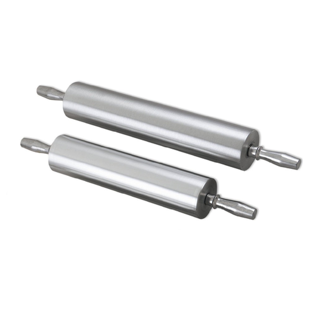 The Browne Foodservice 844718 Rolling Pin is meticulously designed for professionals seeking precision and ease in their culinary tasks. This rolling pin boasts a total length of 26-1/2 inches, with an 18-inch long barrel, making it suitable for rolling out both large and small quantities of dough with uniform consistency. Engineered with a ball bearing roller system, the pin ensures smooth operation, reducing wrist strain while maintaining even pressure across the dough. The 3-1/2 inch barrel is made from cast aluminum, providing durability and a lightweight feel, which is essential for repetitive use in high-volume kitchens. The aluminum construction not only contributes to its robustness but also makes it resistant to rust and easy to clean, an invaluable feature in maintaining hygiene standards. This rolling pin is an excellent addition to commercial kitchens, catering services, and bakeries, where efficiency and reliability are paramount. Its thoughtful design caters to the rigorous demands of the foodservice industry, ensuring consistent results in every use. The Browne Foodservice 844718 Rolling Pin stands out for its blend of strength and functionality, making it a preferred tool for chefs and bakers who prioritize quality in their culinary creations.