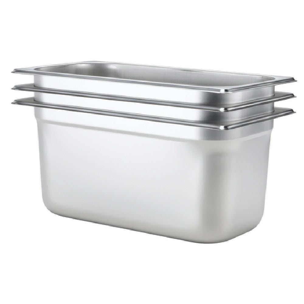 The Browne Foodservice 98144 Steam Table Pan 1/4 Size 3.1 Qt. is an essential asset for culinary professionals seeking reliable and efficient food storage solutions. This steam table pan measures 10-3/8 inches in length, 6-3/8 inches in width, and 4 inches in depth, making it an ideal choice for operations with limited space yet demanding high volume capacity. With a solid construction and reinforced edges, this pan is designed to withstand rigorous use in busy kitchens. The anti-jam feature ensures that the pans stack seamlessly without sticking, saving time during food service preparation and cleanup. Crafted from high-quality 304 stainless steel, this pan boasts a 25-gauge thickness and a 0.5 mm structure, providing excellent durability and resistance to corrosion. Certified by NSF, it aligns with strict public health standards, offering peace of mind with every use. This steam table pan is perfect for catering services, restaurants, and other food service establishments requiring robust and dependable equipment. Its combination of resilience, standardized sizing, and user-friendly features make it a versatile addition that caters to diverse market segments within the food industry.