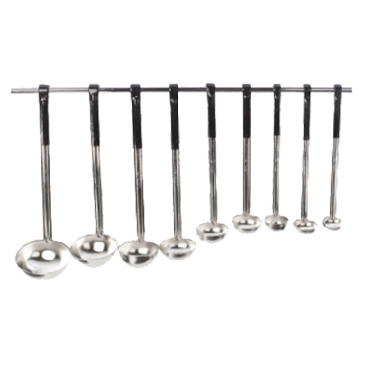 The Browne Foodservice 9943BLK Ladle 3 Oz. 11-3/5"L is a precision-crafted tool essential for efficient food service operations across the culinary industry. This one-piece ladle integrates durability and functionality, with its 3-ounce capacity perfect for controlling portion sizes in settings ranging from restaurant kitchens to buffet services. Its 11-3/5 inch length ensures a comfortable and secure grip, reducing fatigue during prolonged use, while the polypropylene handle enhances safety with heat resistance up to 392°F (200°C). The 1.0 mm thickness of the stainless steel construction provides robust durability, ensuring longevity and consistent performance even in high-demand environments. The black handle offers a sleek aesthetic, suitable for both back-of-house and front-of-house applications. This ladle supports accurate and efficient service, whether for soups, sauces, or dressings, making it an indispensable tool for chefs and food service professionals. The Browne Foodservice 9943BLK Ladle seamlessly combines innovative design with practical application, addressing the unique needs of various market segments, including commercial kitchens, catering services, and institutional dining. It stands out as a reliable and versatile choice, engineered to uphold high standards of quality and efficiency in the food service industry.