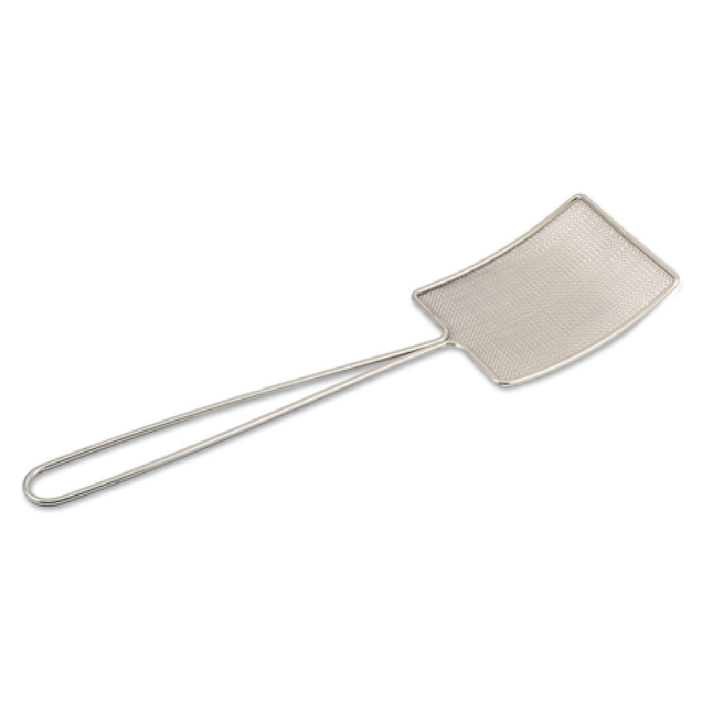 The Browne Foodservice 997 Skimmer is a high-quality kitchen tool, designed for efficiency and durability in various culinary settings. This skimmer features a one-piece handle that measures 11-4/5 inches in length, ensuring a sturdy grip for users. The overall length (O.A.L) of the skimmer is 17-3/4 inches, providing an ample reach for skimming tasks. Constructed with fine mesh, this skimmer is adept at straining small particles, making it ideal for precise culinary applications. The skimmer's dimensions, 5 inches by 6 inches, offer a generous surface area for efficient skimming in both large and small pots, catering to the needs of professional chefs and foodservice establishments. Nickel-plated for enhanced durability, the Browne Foodservice 997 Skimmer is designed to withstand the rigors of a busy kitchen environment. Its robust construction and reliable design make it a valuable asset for restaurants, catering services, and other foodservice operations seeking to maintain high standards of food preparation. The combination of size, material, and design ensures that this skimmer meets the demands of various market segments within the foodservice industry, from high-volume commercial kitchens to boutique culinary establishments.