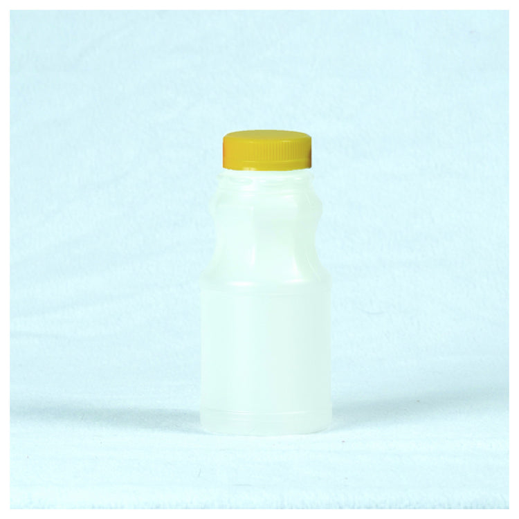 Buccaneer Container Corp, 2150008070, (Buccaneer) Natural, Juice Bottles, 8 oz., empty, round, combo packed with yellow lids (custom printed), (150 each per case). (Packed By: 150 Each Per Case)