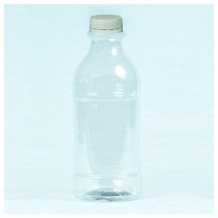 Buccaneer Container Corp, 30420320101, (Buccaneer) Juice Bottle, 32 oz., round, quart, combo packed with red lids, Clear PET, (custom printed) (42 each per case) (Packed By: 42 Each Per Case)
