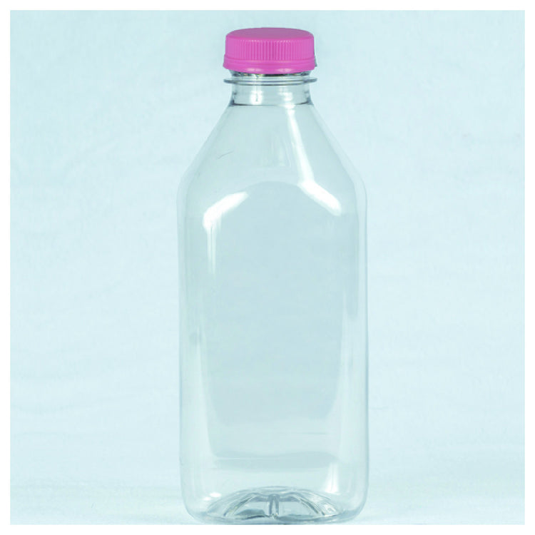 Buccaneer Container Corp, 30420320802, (Buccaneer) Juice Bottle, 32 oz., round, quart, combo packed with pink lids, Clear PET, (custom printed) (42 each per case) (Packed By: 42 Each Per Case)