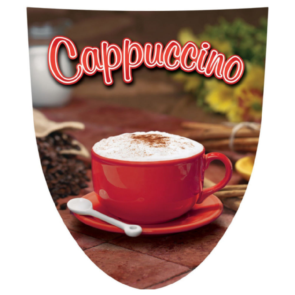 The Bunn 36768.0000 Display Graphics "Cappuccino" IMIX-5 - stock graphic is a specialized component designed for the Bunn IMIX-5 beverage system, providing a distinctive visual appeal that enhances the presentation of cappuccino offerings. This display graphic serves as an essential element for establishments seeking to attract customers with eye-catching and professional imagery. The precise integration of this stock graphic into the IMIX-5 system ensures that it seamlessly complements the overall design and functionality of the unit. By employing the Bunn 36768.0000, businesses can effectively communicate the quality and nature of their cappuccino beverages to patrons, making it a valuable asset in cafes, restaurants, and other food service environments. The compatibility with the IMIX-5 series underscores its utility in various market segments where beverage presentation is crucial. The use of stock graphics like this one allows for quick and straightforward installation, ensuring minimal disruption to service operations while enhancing the visual merchandising capabilities of the beverage station. This product represents a strategic investment for operators aiming to boost visual merchandising and attractively present their cappuccino products.