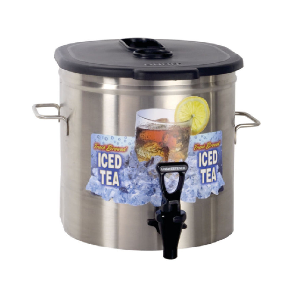 The Bunn 37100.0000 TDO-3.5 Iced Tea Dispenser is a low profile unit engineered for convenience and efficiency in beverage service environments. With a 3.5 gallon capacity, it is designed to accommodate substantial volumes of iced tea, ideal for busy cafes, restaurants, or any setting where beverage demand is high. The dispenser features a brew-through plastic lid, allowing for seamless tea preparation without removing the lid, thus ensuring a quick and efficient brewing process. It is equipped with side handles, facilitating easy transport and maneuverability. The stainless steel construction provides durability and a sleek aesthetic, enhancing the service area's professional appearance. Furthermore, the dispenser includes a precisely designed faucet to indicate whether the tea is sweetened or unsweetened, catering to diverse customer preferences. This attention to detail makes the Bunn TDO-3.5 a versatile asset in any establishment, meeting the needs of varied market segments ranging from small cafes to large-scale catering operations. Its robust build and functional design underline its value proposition, delivering reliable performance and ease of use in a compact form.