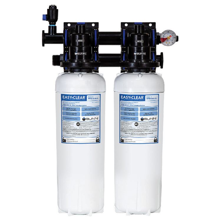 The Bunn 56000-0022 System WEQ-TWIN35(6)-2L is a specialized system designed for efficient water filtration in commercial settings. This system is engineered to meet the high demands of various industry segments, providing a robust solution for water quality management. Its twin design ensures redundancy and reliability, catering to businesses that require uninterrupted water filtration. The system's model identifier - WEQ-TWIN35(6)-2L - hints at its capacity and performance, although specific volume and technical details should be referenced by consulting Bunn's official documentation or product specifications for precise requirements. By efficiently managing water filtration, this system can serve diverse markets such as food service, hospitality, and industrial operations, enhancing operational efficiency and product quality. The Bunn 56000-0022 is an essential component for businesses looking to maintain high standards of water purity and operational reliability. Its construction and design reflect Bunn's commitment to quality and innovation, making it a valuable asset for any commercial enterprise seeking to optimize its water systems.