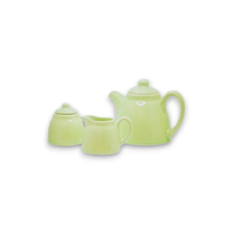 By The Earth Living, CM089, Tea Set- 3 Piece, Tea Pot: 4" (H), 30 oz., Creamer: 2.5" (H), 6.7 oz., Sugar Container: 2.5", dishwasher safe, oven safe, eco-friendly ceramic stoneware, Matte Green (4 each per case) (Packed By: Cs)