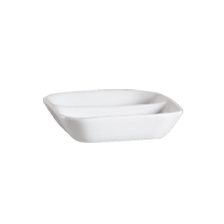The CAC China 101-SQ2 Lincoln Divided Sauce Dish is a compact, square dish measuring 3"L x 3"W x 3/4"H, tailored to provide versatility and functionality in various culinary settings. Distinguished by its dual-compartment design, this dish is perfect for serving multiple sauces or condiments simultaneously, enhancing both presentation and convenience. Crafted from high-quality porcelain, it boasts a Bone White hue that elegantly complements any tableware collection. Its durability is evident as it is dishwasher, oven, and microwave safe, ensuring resilience through repeated use in both professional and home kitchens. Sold by the case, with 4 dozen per case, this dish is ideal for establishments requiring bulk purchases, such as restaurants, catering services, and hospitality venues. The robust construction and practical design make the CAC China 101-SQ2 an essential component for those aiming to elevate their dining experience, offering a meticulous balance between aesthetic appeal and functional design. Whether in a bustling restaurant or a refined catering event, this sauce dish seamlessly integrates into diverse market segments, proving itself as an invaluable asset within the food service industry.