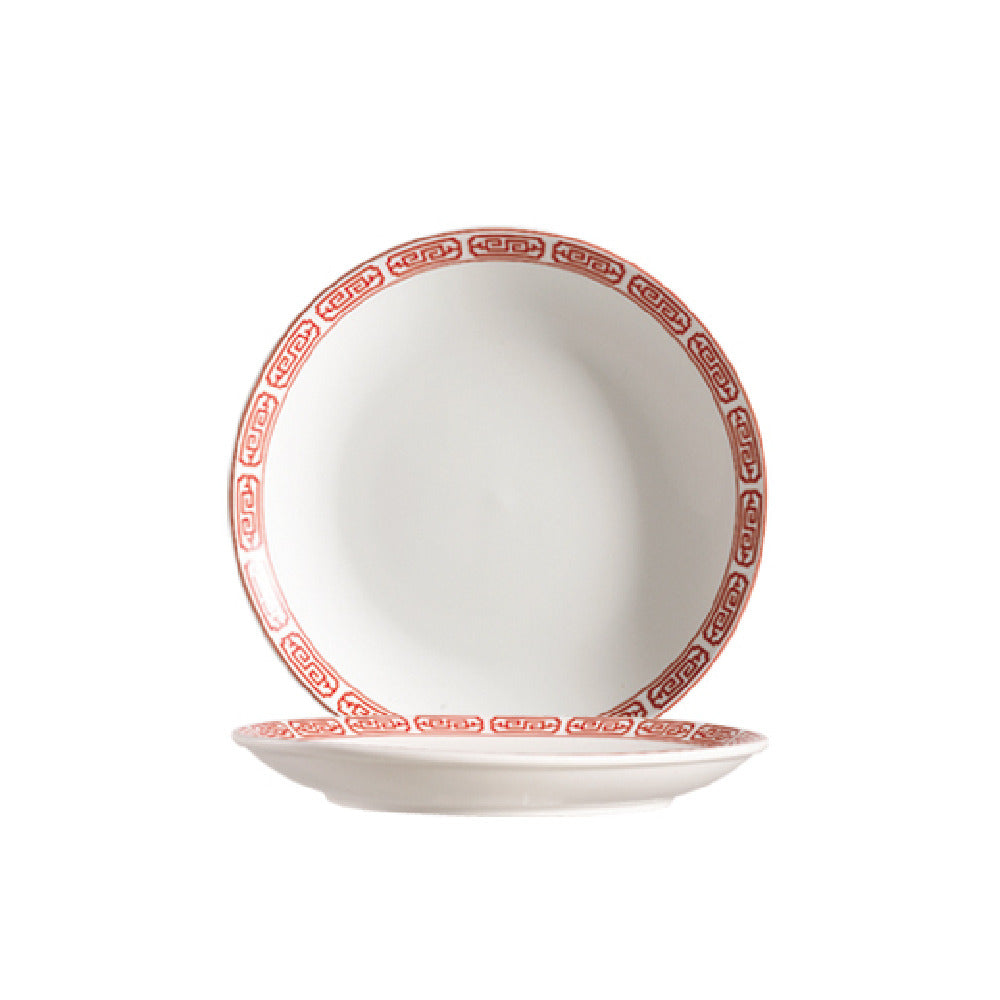 CAC China 105-16C Red Gate Plate 10" Dia. X 1-1/4"H Round - 1 Dozen