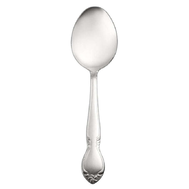 The CAC China 2003-10 Elizabeth Tablespoon is a meticulously crafted utensil, measuring 8-3/8 inches in length and made from durable 18/0 stainless steel, signifying its heavy weight and robust construction. This tablespoon is designed to meet the demands of various dining establishments, ensuring long-lasting performance and reliability under frequent use. The 18/0 stainless steel composition indicates its nickel-free content, offering a cost-effective solution while maintaining a high level of resistance to corrosion. This is particularly advantageous for establishments seeking to balance quality with budgetary constraints. Packed by 25 dozen per case, the Elizabeth Tablespoon is an ideal choice for high-volume environments such as hotels, restaurants, and catering services, where large quantities are required without compromising on durability or style. Its substantial weight adds a touch of elegance to any table setting, making it suitable not only for commercial dining but also for upscale events that demand a sophisticated presentation. The CAC China 2003-10 Elizabeth Tablespoon stands out as a versatile addition to any cutlery collection, providing both aesthetic appeal and functional utility across multiple dining scenarios.