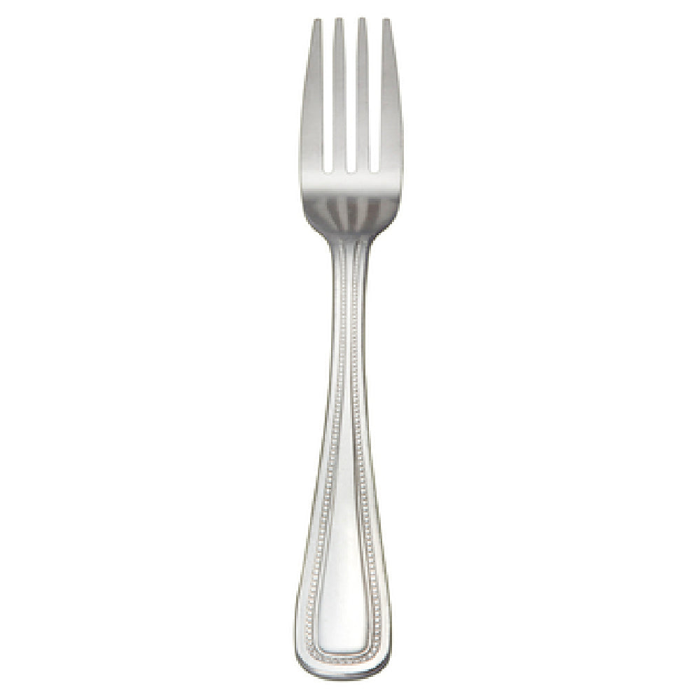 The CAC China 2008-06 Pearl Salad Fork is an elegantly designed utensil, measuring 6-1/8 inches in length, making it suitable for a refined dining experience. Crafted from 18/0 stainless steel, this salad fork offers a balance of durability and affordability, ideal for both casual and upscale dining settings. As a heavy weight flatware piece, it provides a substantial feel that enhances the dining experience, making it a preferred choice for restaurants seeking to enhance table settings. The fork is packed in cases containing 50 dozen, catering to the needs of large-scale food service operations. Its robust construction ensures longevity, even with frequent use, while its polished exterior adds a touch of sophistication, complementing a variety of tableware styles. This product is particularly beneficial for establishments that prioritize both functionality and aesthetics, such as hotels, banquet facilities, and catering services, where the balance between style and practicality is essential. The CAC China 2008-06 Pearl Salad Fork is a testament to quality in material and design, making it a valuable addition to any dining collection that requires reliability and elegance in equal measure.