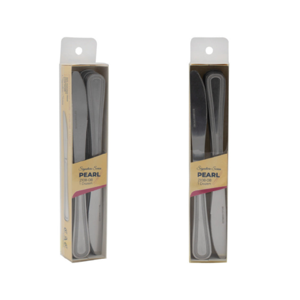 The CAC China 2108-08 Pearl Dinner Knife is an 8 3/4" utensil crafted from 18/0 stainless steel, designed to deliver both durability and aesthetic appeal. This high-weight dinner knife is an exemplary choice for establishments that value both functionality and elegance in their table settings. Packaged efficiently with 25 dozen per case, it caters to high-volume dining settings such as restaurants and banquet facilities. The steel composition ensures resistance to corrosion, making it ideal for frequent use and washing in commercial environments. The knife's design seamlessly complements a variety of dinnerware styles, enhancing the overall dining experience for guests. Its substantial weight provides a balanced feel, which is appreciated by users in both casual and fine dining settings. The CAC China 2108-08 Pearl Dinner Knife stands out in its field for its combination of practicality and refined design, making it a versatile addition to any professional tableware collection.