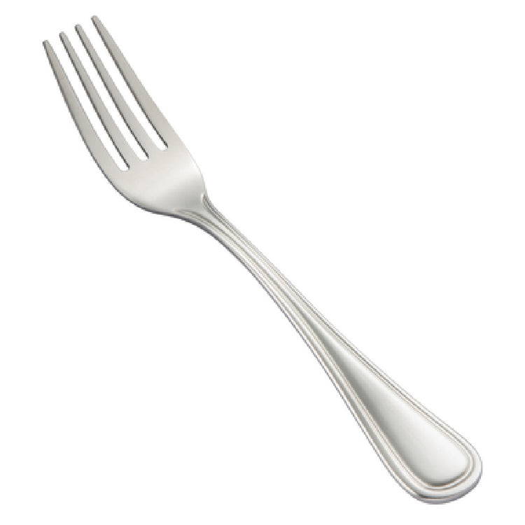 The CAC China 8002-06 Elite Salad Fork is an exceptional piece of cutlery, measuring 6-3/4 inches in length and crafted from extra heavy weight 18/8 stainless steel, providing both durability and a touch of elegance to dining experiences. This salad fork is meticulously designed for various market segments within the food service industry, including upscale restaurants, catering services, and hospitality establishments, where both functionality and aesthetic appeal are paramount. Packed by 25 dozen per case, the CAC China 8002-06 ensures an ample supply for demanding settings, making it a practical choice for large-scale operations that require consistency and reliability. The 18/8 stainless steel composition signifies a mix of 18% chromium and 8% nickel, which contributes to its resistance to corrosion and ease of maintenance, ensuring longevity even with frequent use. The extra heavy weight design enhances the balance and feel in the hand, providing a satisfying dining experience for guests. Whether it is used in a fine dining restaurant or a bustling banquet hall, the CAC China 8002-06 Elite Salad Fork is a testament to superior quality, functionality, and style, fulfilling the diverse needs of the food service industry with precision and elegance.
