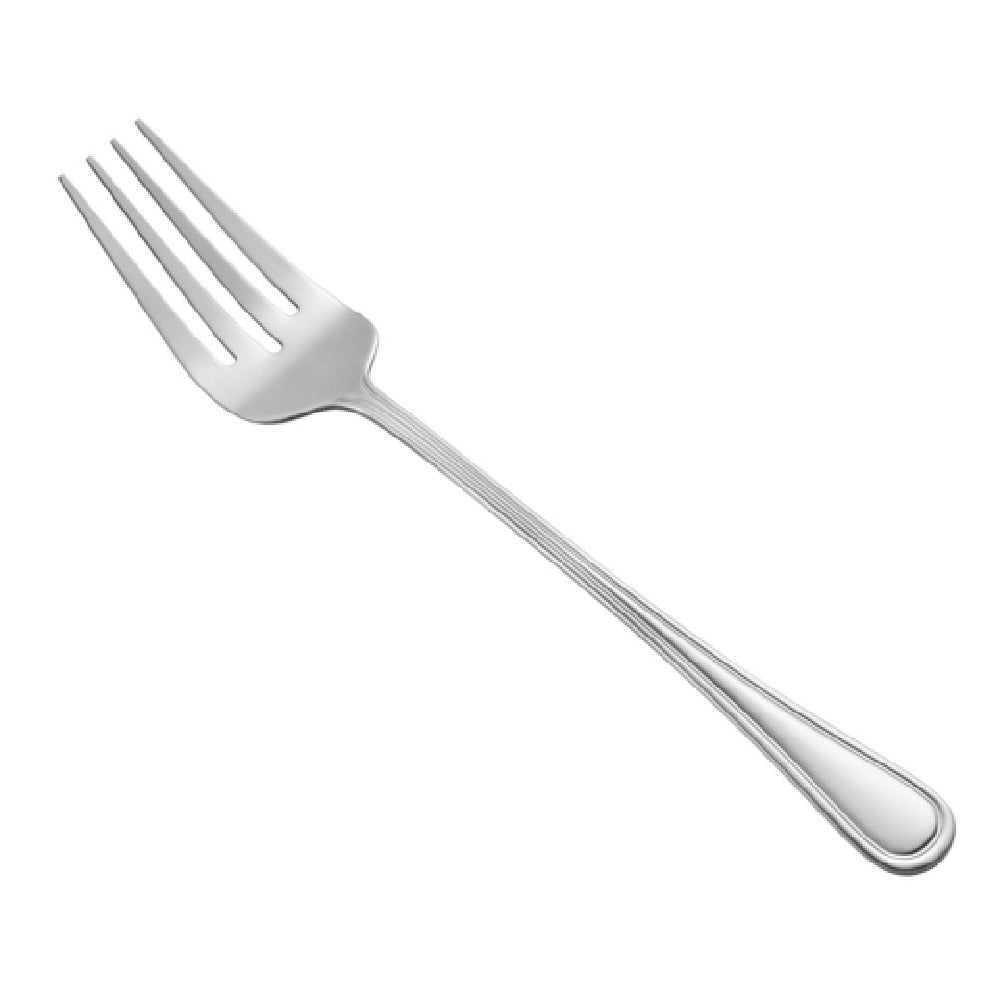 The CAC China 8002-21 Elite Banquet Fork is a premium dining utensil measuring 12 inches in length, crafted for those who value durability and elegance. Constructed from 18/8 stainless steel, this extra heavy weight fork is designed to withstand the rigors of frequent use, making it an excellent choice for high-end catering events, upscale restaurants, and lavish banquets. The 18/8 stainless steel composition, which consists of 18% chromium and 8% nickel, not only ensures resistance to corrosion but also provides a lustrous finish, enhancing the aesthetic appeal of any table setting. Packed in cases of 10 dozen, the CAC China 8002-21 Elite Banquet Fork is ideal for establishments that require large quantities without compromising on quality. Its substantial weight offers a balanced and comfortable feel, elevating the dining experience for guests. This robust fork is suited for a variety of market segments within the hospitality industry, from luxury hotels seeking to provide guests with a sophisticated dining atmosphere to event planners looking to impress at large-scale functions. With its blend of functionality and refined design, the CAC China 8002-21 Elite Banquet Fork stands out as a versatile and reliable choice for professionals in the food service industry.