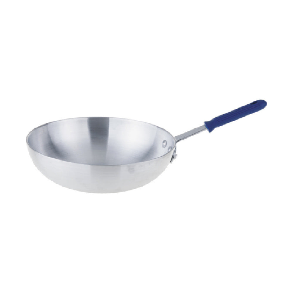The CAC China A8FP-4-11 Stir Fry Pan is an 11-inch, 4mm thick culinary tool designed for professional and home cooks who demand durability and efficiency in their kitchen equipment. Crafted from heavy-duty aluminum, this stir fry pan ensures even heat distribution, which is essential for achieving perfect stir-fry dishes. The robust thickness of 4mm adds to its durability, making it resistant to warping and ideal for high-temperature cooking. As an NSF-certified product, it meets stringent public health and safety standards, which is crucial for commercial kitchen environments. This certification underscores its suitability for use in restaurants, catering services, and other food service establishments that prioritize hygiene and safety. Packed by six per case, the CAC China A8FP-4-11 Stir Fry Pan is also a practical option for bulk purchasing, offering cost efficiency for businesses. The sleek design and reliable construction of this pan make it a versatile addition to any kitchen, whether in a bustling restaurant or a home setting where quality cooking tools are valued. Its aluminum composition not only provides excellent thermal conductivity but also makes it lightweight and easy to handle, enhancing the cooking experience for culinary professionals and enthusiasts alike.