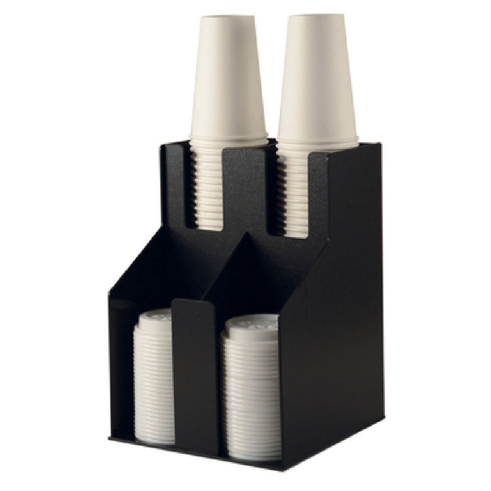 The CAC China ACO2-2A Cup/Lid Organizer is a meticulously designed solution tailored to efficiently manage beverage service operations. This organizer boasts a two-tier, two-stack configuration, skillfully accommodating cups and lids up to 4 inches in diameter. Crafted from durable acrylic, it features a sleek black finish that complements a variety of settings, from bustling cafes to organized event spaces. This organizer is particularly valued for its BPA-free construction, ensuring safety and peace of mind in environments that prioritize health standards. Packed with four units per case, the ACO2-2A is engineered to streamline operations, providing quick and easy access to essential coffee and drink accessories. Its compact yet sturdy design is ideal for establishments looking to maximize counter space while maintaining a professional appearance. The CAC China ACO2-2A Cup/Lid Organizer stands out as a versatile asset in food service environments, merging functionality with aesthetic appeal to enhance customer service efficiency.