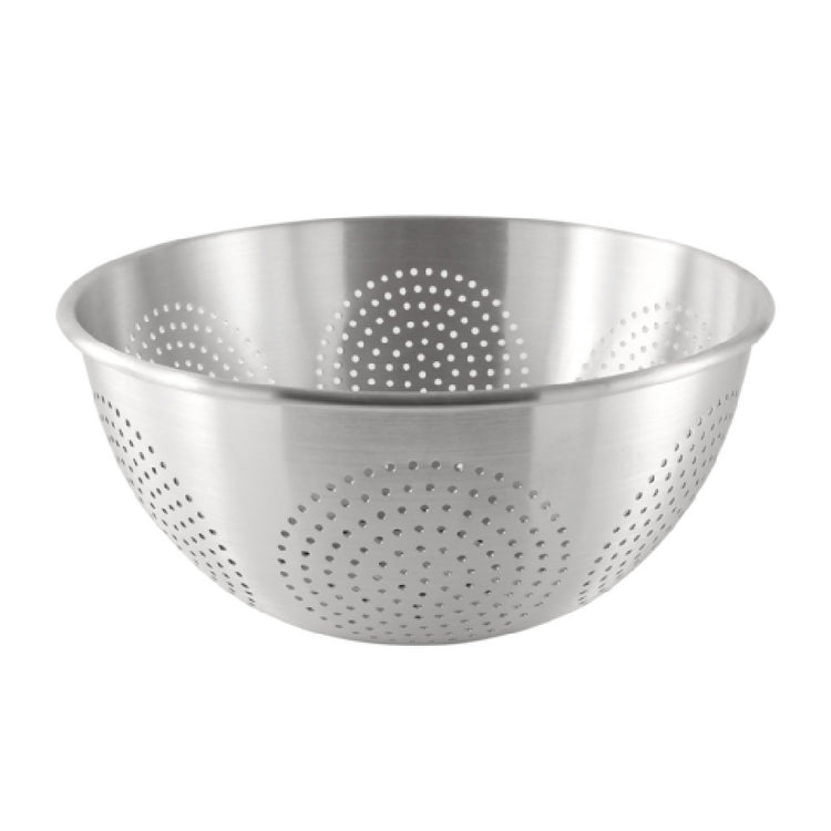 The CAC China ALCL-16C Chinese Colander is a specialized kitchenware item with a 16-quart capacity and a diameter of 16 inches, making it an ideal tool for various culinary applications. This round colander is constructed from aluminum, which ensures durability and efficient heat conduction, allowing for quick drainage and rinsing of ingredients. The absence of handles provides a sleek, minimalist design that is both practical and easy to store. With packaging of 12 pieces per case, the CAC China ALCL-16C is a suitable choice for commercial kitchens, catering businesses, and large-scale food preparation environments. Each colander is meticulously crafted to meet the high-volume demands of professional chefs and food service operators, ensuring that it can withstand rigorous daily use. Its substantial size accommodates a diverse range of tasks, from washing large quantities of produce to draining pasta, making it a versatile addition to any kitchen. This product is tailored for industry professionals seeking reliable and robust kitchen equipment that seamlessly integrates into their existing workflows, supporting efficient kitchen operations and high-quality food preparation.