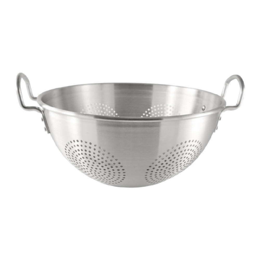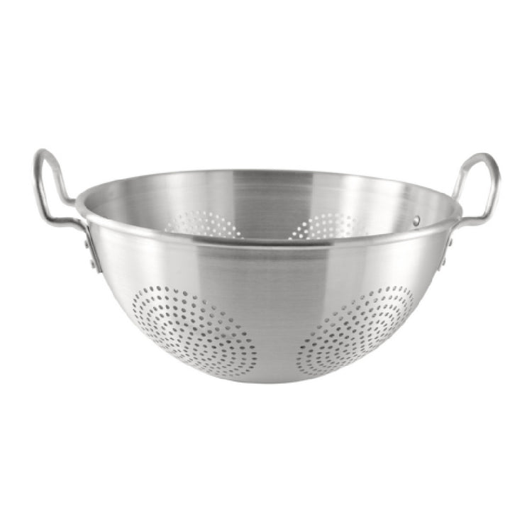 The CAC China ALCL-16CH Chinese Colander is a versatile kitchen tool, designed to meet the demands of both professional and home chefs. With a generous capacity of 16 quarts and a diameter of 16 inches, this round colander is equipped with loop handles for easy maneuverability, making it ideal for handling large quantities of ingredients. Crafted from durable aluminum, it is lightweight yet robust, ensuring long-lasting performance in various culinary settings. Packaged by six pieces per case, the CAC China ALCL-16CH is a practical choice for bulk buyers, including restaurants, catering services, and culinary schools. Its aluminum construction not only provides excellent heat conduction but also resists rust and corrosion, making it suitable for frequent use in high-volume kitchens. The simplistic yet effective design of this colander facilitates quick and efficient draining of pasta, vegetables, and other ingredients, saving precious time during food preparation. The combination of ample capacity, sturdy construction, and practical design elements makes the CAC China ALCL-16CH Chinese Colander an indispensable tool for those seeking reliability and efficiency in their kitchen operations.