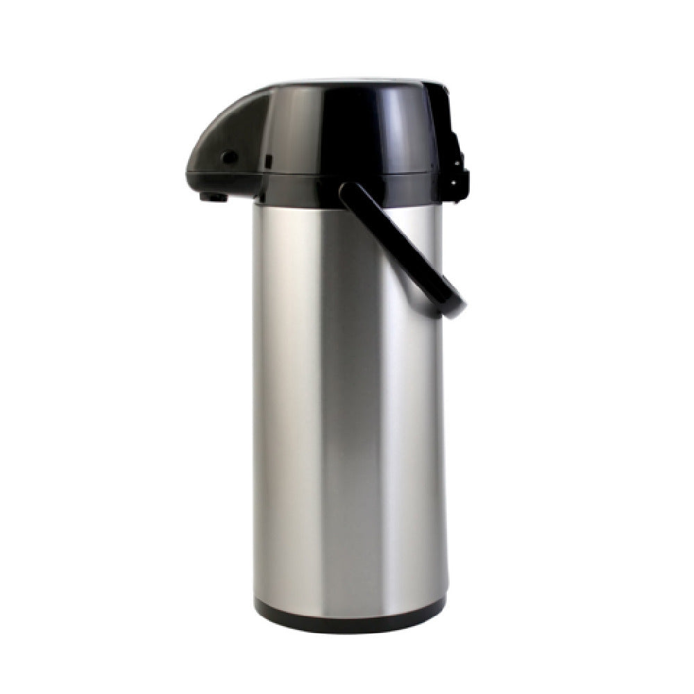 The CAC China APGL-25LT Airpot 2.5 liter is a meticulously designed beverage dispenser, ideal for a variety of professional and personal settings. Featuring a substantial 2.5-liter capacity, this airpot is perfect for serving large groups without frequent refills. The glass-lined interior is a standout feature, ensuring superior thermal retention to keep beverages hot or cold for extended periods. Its double-wall vacuum insulation enhances this thermal efficiency, making it a reliable choice for catering events, office settings, or hotel breakfast areas. The lever-style mechanism ensures easy and hygienic dispensing, reducing the risk of spills and maintaining a tidy serving area. Complemented by a durable stainless steel exterior, this airpot not only offers a sophisticated appearance but also provides resilience against the wear and tear of daily use. The black lid adds a sleek touch while the integrated carrying handle allows for convenient portability, facilitating easy transport across various service areas. Packaged as six units per case, the CAC China APGL-25LT Airpot is an excellent choice for establishments requiring multiple dispensers, ensuring consistency and efficiency in service. Its combination of functionality, aesthetic appeal, and robust construction makes it a valuable asset for any beverage service operation.