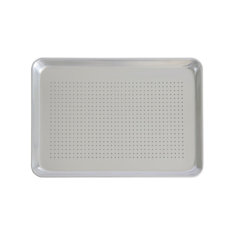 The CAC China ASHP-1318P Sheet Pan is a 1/2-size pan measuring 18 inches in length and 13 inches in width, engineered for versatility and efficiency in various culinary settings. Crafted from 20 gauge aluminum, this sheet pan combines durability with lightweight handling, making it an essential tool for professional chefs and home bakers alike. Its perforated design allows for superior air circulation, ensuring even baking and optimal results for baked goods ranging from cookies to pastries. The pan's construction supports rapid heat conduction and quick cooling, ideal for kitchens that require high productivity and consistent quality. Sold in cases of 12, the CAC China ASHP-1318P is a practical choice for establishments with high-volume needs, such as commercial bakeries, catering services, and restaurants. The robust material and thoughtfully designed perforations not only enhance baking performance but also contribute to energy efficiency by reducing baking times. This sheet pan stands out as a reliable and economical solution within the foodservice industry, providing exceptional value for businesses aiming to streamline operations while maintaining a high standard of culinary excellence.