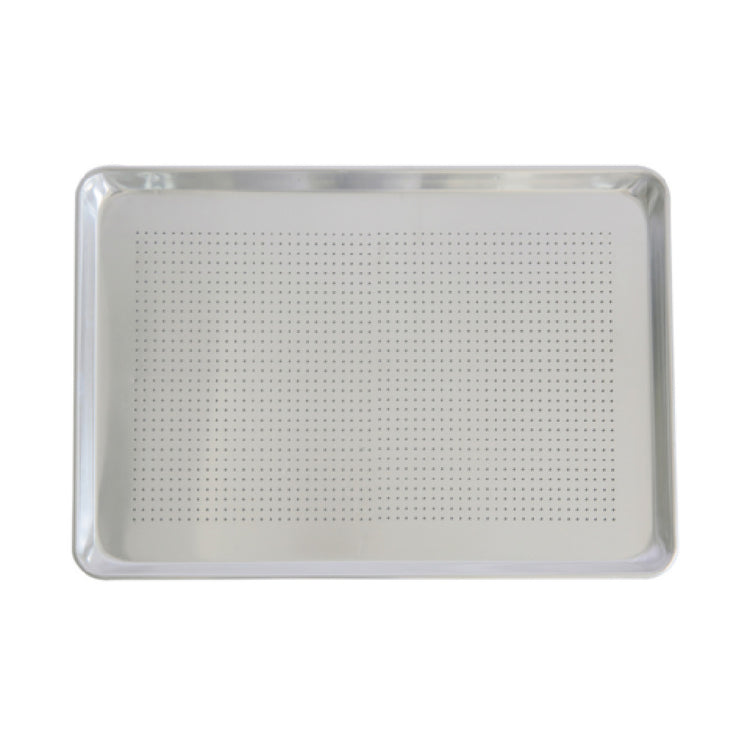 The CAC China ASHP-1826P Sheet Pan is a full-size, high-performance kitchen essential designed for professional culinary environments. With dimensions of 26 inches in length and 18 inches in width, this sheet pan offers ample space for large-scale food preparation, making it an ideal choice for commercial kitchens, bakeries, and catering services. Constructed from durable 20 gauge aluminum, it ensures even heat distribution and consistently excellent baking results. The perforated design enhances airflow, allowing for optimal baking and roasting outcomes by promoting even cooking and moisture release. This feature is particularly beneficial for pastry chefs and bakers looking to achieve perfect texture and color in their baked goods. Packed by 12 each per case, the CAC China ASHP-1826P Sheet Pan is also a cost-effective solution for bulk purchasing, catering to the needs of businesses with high-volume food production. Its robust construction and practical design make it a versatile tool for various cooking and baking applications, providing reliable performance and exceptional durability in demanding culinary settings.