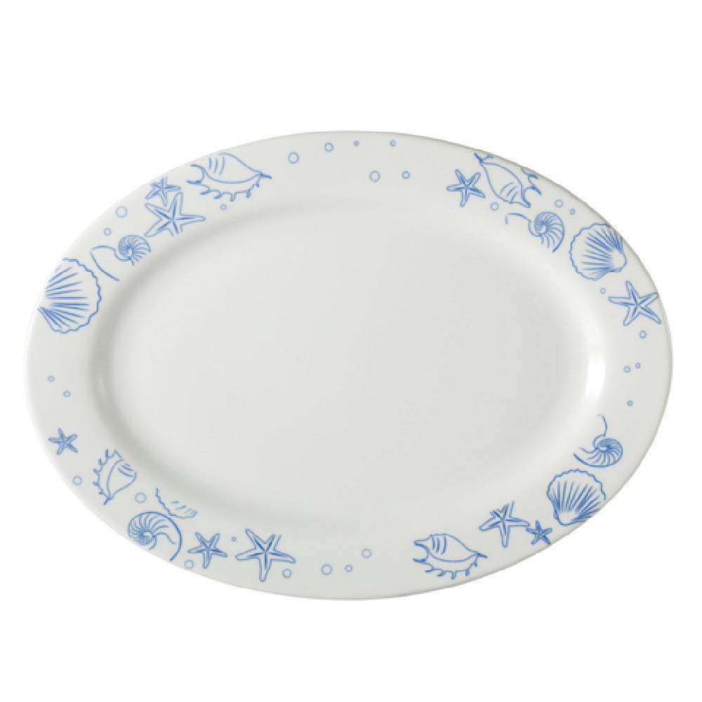 CAC China ATC-81 Atlantic Seashell Platter 18"L X 12-1/2"W X 1-3/4"H Oval - 6/Case
