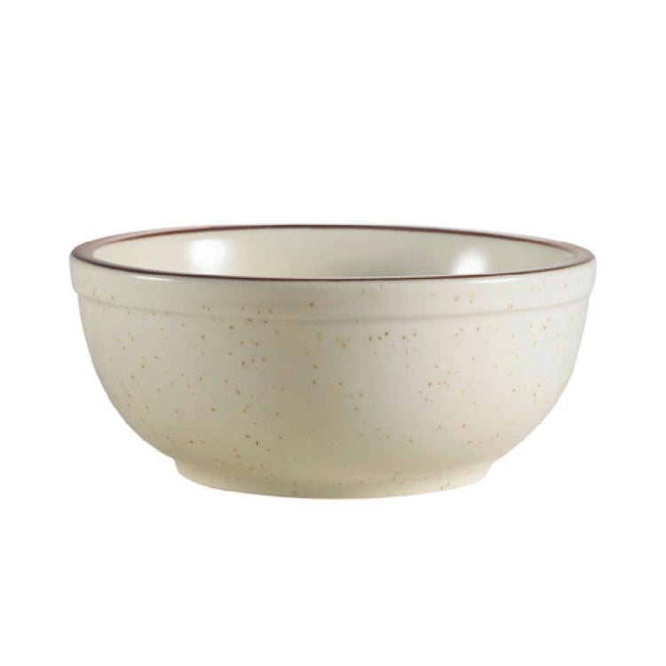 The CAC China AZ-15 Arizona Nappie Bowl is a meticulously crafted piece of stoneware that combines functionality with a sophisticated design. This bowl features a capacity of 12-1/2 oz., making it a versatile choice for serving a variety of dishes. With a diameter of 5-5/8" and a height of 2", it provides ample space while maintaining a convenient size for both individual and commercial use. The narrow rim adds a touch of elegance, and the distinctive brown rim and brown speckled pattern, paired with the American white base, offer an appealing aesthetic that complements diverse table settings. Engineered for durability, this bowl is dishwasher, oven, and microwave safe, ensuring ease of use and maintenance. Sold by the case, with each case containing three dozen bowls, it is ideal for bulk purchasing in the food service industry. Whether for restaurants, catering services, or home use, the CAC China AZ-15 Arizona Nappie Bowl stands out for its reliable construction and stylish design, making it a valuable choice for any setting that demands both quality and functionality.