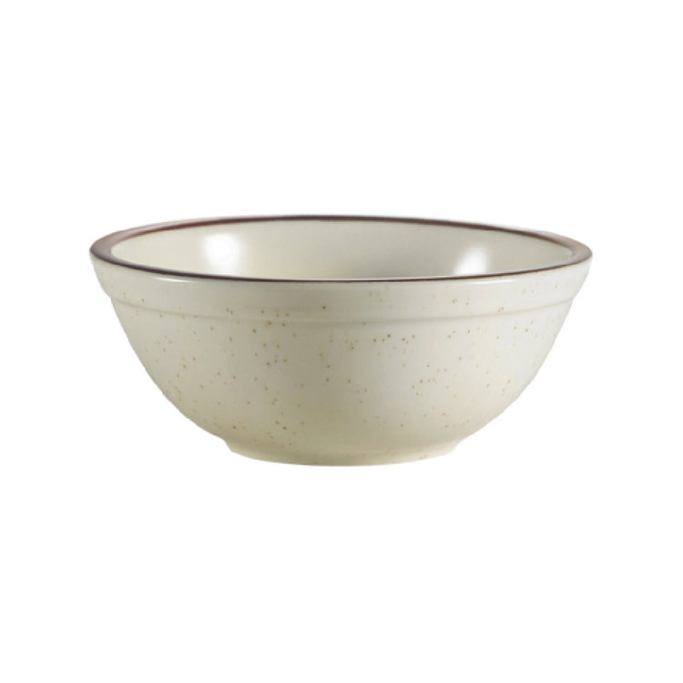 The CAC China AZ-24 Arizona Nappie is a versatile and robust piece of dinnerware designed for both commercial and residential use. With a capacity of 10 ounces, this round nappie measures 5-1/4 inches in diameter and 1-3/4 inches in height, making it suitable for a variety of serving needs. Crafted from durable stoneware ceramic, it features a distinctive brown rim with a brown speckled pattern and an American white base, offering a classic yet rustic aesthetic that complements diverse table settings. This product is dishwasher, oven, and microwave safe, providing convenience and efficiency in food preparation and clean-up. Ideal for restaurants, catering services, and hospitality venues that require reliable and stylish dinnerware, the CAC China AZ-24 Arizona Nappie is sold by the case, with each case containing 3 dozen pieces, ensuring ample supply for high-volume operations. Its combination of functionality, durability, and aesthetic appeal makes it a standout choice for industry professionals seeking quality stoneware dinnerware.