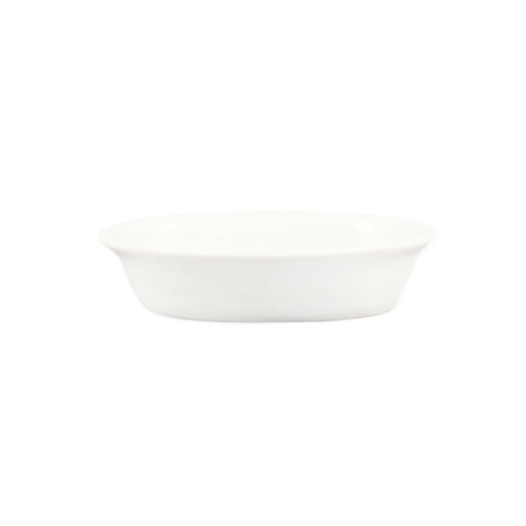 The CAC China BKW-9 Baking Dish is a versatile kitchen essential, meticulously designed with dimensions of 6-3/4 inches in length, 5-7/8 inches in width, and 1-1/2 inches in height. With a capacity of 9 ounces, this oval-shaped dish is crafted from high-quality stoneware ceramic, finished in a pristine Bone White that complements any table setting. Its construction ensures durability and resilience, making it dishwasher, oven, and microwave safe, ideal for both home cooks and professional chefs. Sold by the case, this product is efficiently packed with 3 dozen dishes per case, catering to commercial kitchens, catering services, and restaurants with high-volume needs. The dish's compact size and functionality make it perfect for preparing individual portions of casseroles, side dishes, or desserts, meeting diverse culinary demands. Whether used in bustling restaurant kitchens or for hosting at home, the CAC China BKW-9 Baking Dish combines style, practicality, and efficiency, offering a reliable solution for any food service environment.