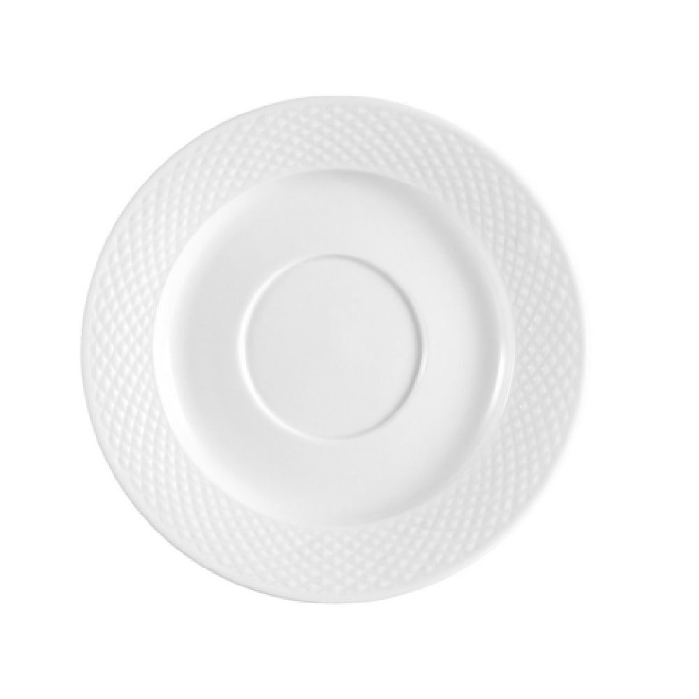 The CAC China BST-36 Boston Saucer is a meticulously crafted dining essential, measuring 5 inches in diameter and standing 1/2 inch high. This round saucer is an ideal companion to the BST-35 cup, designed with an embossed exterior that adds a touch of elegance to any table setting. Made from high-quality porcelain, the saucer boasts a Super White finish, enhancing its sophisticated appeal and making it well-suited for upscale dining establishments. Its construction ensures durability and resilience, with the saucer being dishwasher, oven, and microwave safe, providing convenience and versatility in a fast-paced restaurant environment. Sold by case and packed in sets of three dozen, the CAC China BST-36 Boston Saucer is perfect for bulk purchasing by cafes, restaurants, and catering services. Its classic design complements a variety of dining themes, while its practical features cater to the demands of modern food service operations. This saucer not only meets aesthetic standards but also stands up to the rigorous demands of professional kitchens, making it a smart investment for those looking to provide a refined dining experience.