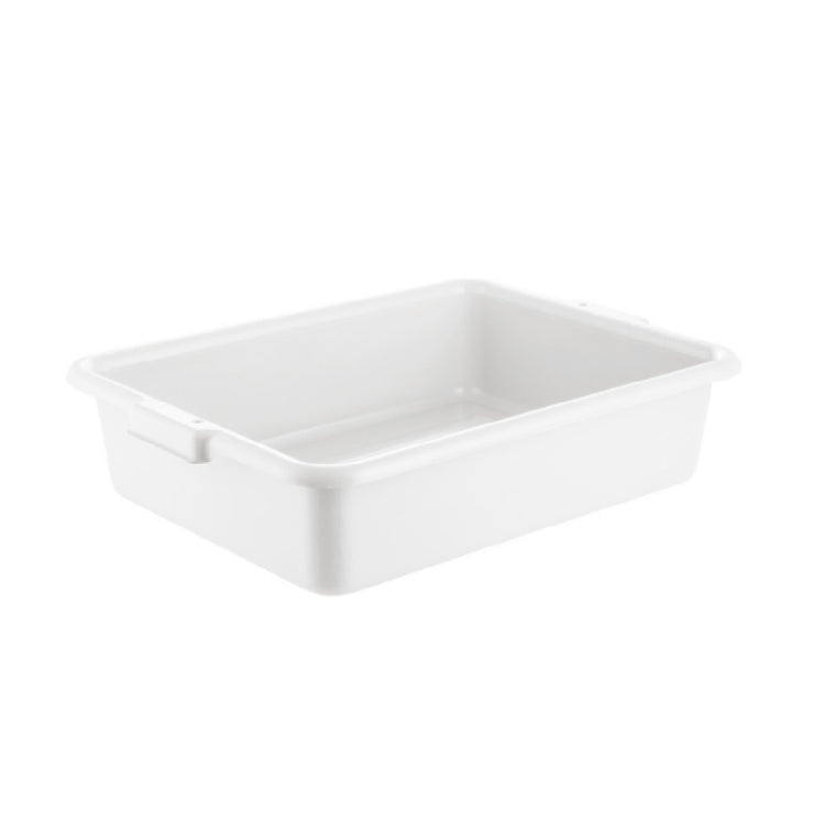 The CAC China BTDB-5WT Bus Box is a versatile and essential tool for various industry segments, particularly in food service and hospitality. With dimensions of 22"L x 15-3/4"W x 5"H, this bus box offers ample capacity for efficient storage and transportation of items. Crafted from durable polypropylene, it ensures long-lasting performance and resistance to everyday wear and tear. The pristine white color adds a clean and professional appearance, suitable for both front-of-house and back-of-house operations. One of its significant advantages is being BPA-free, catering to health-conscious establishments by ensuring safety in food contact applications. The CAC China BTDB-5WT Bus Box is packed individually, highlighting its focus on quality and functionality. This product is designed to meet the demands of high-traffic environments, providing reliability and practicality for restaurant kitchens, catering services, and institutional dining facilities. Its substantial size and sturdy construction make it an excellent choice for transporting dishes, ingredients, or supplies, contributing to streamlined operations and enhanced efficiency in any food service setting.