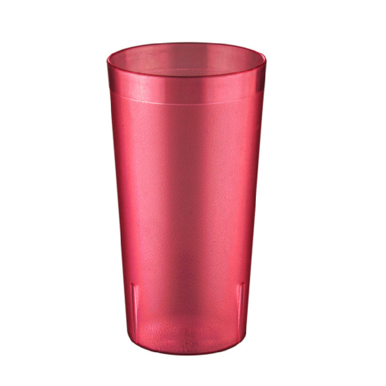 The CAC China BVPT-32RD Tumbler 32 oz. Pebbled is a robust and practical solution for various beverage-serving environments, designed to cater to both commercial and domestic needs. This tumbler boasts a substantial capacity of 32 ounces, making it suitable for serving generous portions of drinks. It is crafted from SAN plastic, which is not only BPA-free but also ensures break resistance, providing a durable option for high-traffic settings. The pebbled texture adds a tactile and visually appealing element while enhancing grip. Its stackable design, featuring bottom lugs, facilitates easy storage and organization, making it an efficient choice for establishments with limited space. This tumbler is dishwasher safe, ensuring convenience in cleaning and maintenance, which is essential for busy restaurants, cafeterias, or events where quick turnaround is crucial. The bold red color adds a vibrant touch to any table setting, making it a standout option for those looking to add a splash of color to their service. Packed by 2 dozen per case, the CAC China BVPT-32RD Tumbler 32 oz. Pebbled is a versatile and reliable choice for various market segments, including food service providers and caterers seeking a balance of practicality and aesthetic appeal.