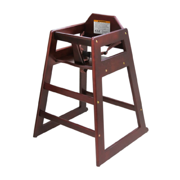 The CAC China CHWH-30MAH High Chair Wooden 29-3/4"H is a meticulously crafted seating solution that combines functionality with aesthetic appeal. Standing at a height of 29-3/4 inches, this high chair is designed to accommodate young children safely and comfortably. Constructed with high-quality wood, it features a rich mahogany finish that complements a variety of interior designs, making it a versatile addition to restaurants, cafes, and family-oriented dining establishments. The chair's robust build ensures durability, withstanding the rigorous use typical in commercial environments. Its design focus on safety and stability caters to the needs of restaurateurs and café owners who prioritize customer satisfaction and safety. The high chair is packed individually, ensuring that each unit arrives in pristine condition, ready for immediate use. Whether for a bustling urban eatery or a cozy neighborhood café, the CAC China CHWH-30MAH High Chair offers a reliable and stylish seating option that enhances the dining experience for families with young children, while also aligning with the operational needs of the food service industry.