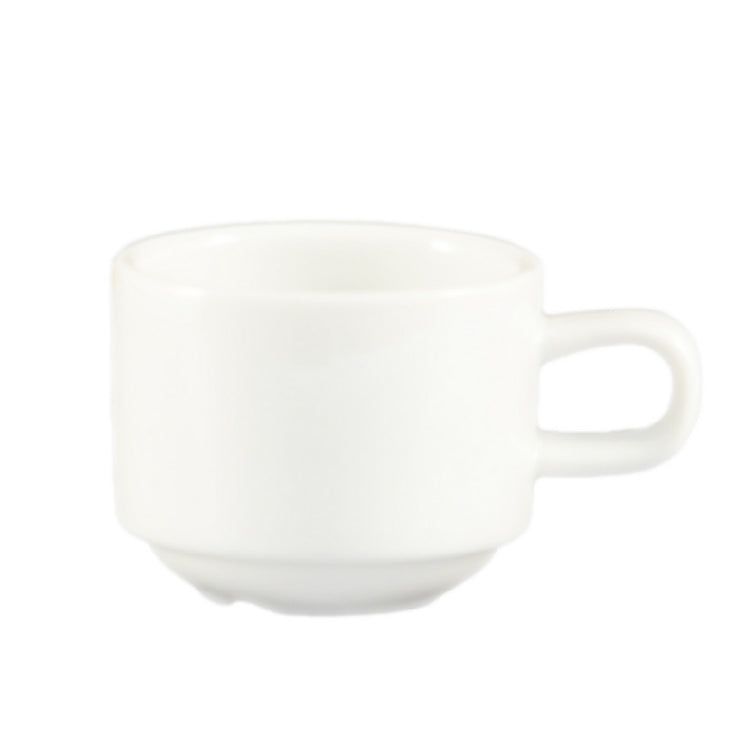 The CAC China CLB-35 Clinton Demitasse Cup is a meticulously crafted porcelain cup designed for both functionality and elegance. With a capacity of 3-1/2 oz., this cup is ideal for serving espresso or other small coffee beverages. It features a round shape with dimensions of 2-1/2 inches in diameter and 2 inches in height, making it compact yet stylish. A notable feature of this demitasse cup is its stacking capability, allowing for efficient storage, particularly beneficial for restaurants and cafes with space constraints. The cup is engineered to be dishwasher, oven, and microwave safe, offering versatile utility in busy foodservice environments where quick heating and easy cleaning are essential. Its Super White porcelain construction not only enhances its visual appeal with a classic, clean look but also ensures durability and resistance to daily wear. Sold by the case, each pack contains 3 dozen cups, catering to the needs of large-scale catering services and hospitality businesses. The CAC China CLB-35 Clinton Demitasse Cup combines practical design with premium material quality, serving as an excellent choice for establishments seeking reliable and aesthetically pleasing drinkware solutions.