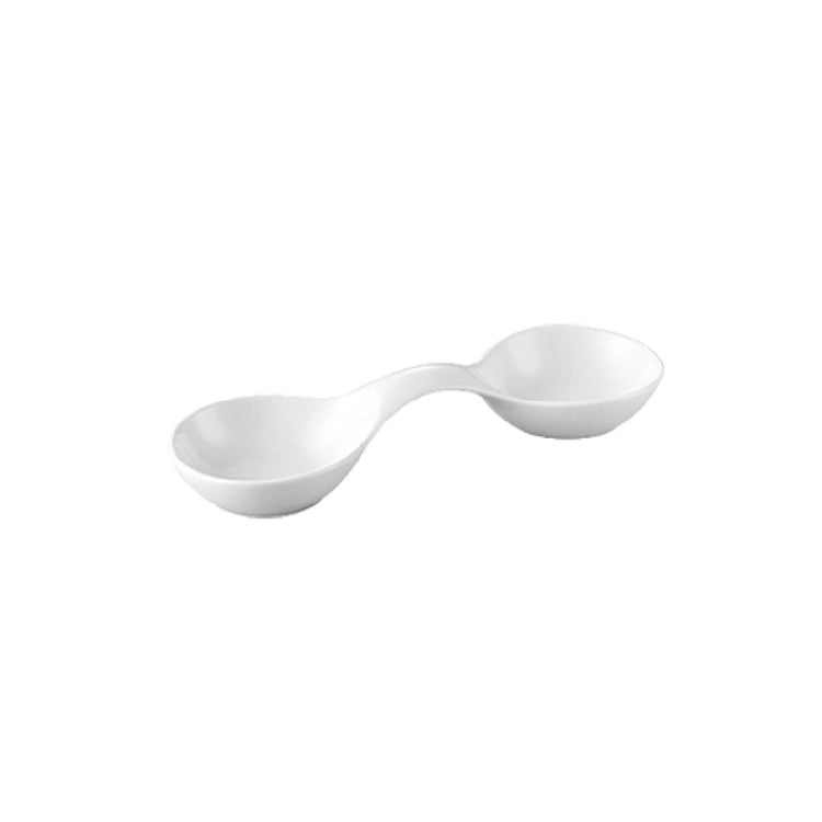 The CAC China CN-W2 Accessories Leaf Duo Dish is a uniquely designed serving dish that caters to both aesthetic appeal and functionality. This dish features a spoon-shaped design, offering two distinct compartments, each with a capacity of 3 oz., making it ideal for serving a variety of appetizers or condiments. The dimensions of the dish measure 11-1/4 inches in length, 3-7/8 inches in width, and 2 inches in height, providing ample space for creative presentations. Crafted from high-quality porcelain in a Super White finish, it promises durability and elegance, suitable for both casual and formal dining settings. This dish is dishwasher, oven, and microwave safe, ensuring ease of use and maintenance. It is sold by the case, with each case containing two dozen of these exquisite dishes, making it a cost-effective choice for restaurants, catering services, and hospitality venues looking to enhance their table settings. The CAC China CN-W2 Accessories Leaf Duo Dish combines style with practicality, making it a versatile addition to any culinary establishment aiming to deliver a memorable dining experience.