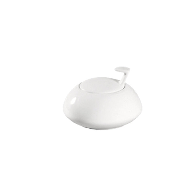 The CAC China COL-HSP CAC Collection Sugar Bowl 3-1/4" Dia. Round is a meticulously crafted piece, ideal for both commercial and home settings that demand elegance and functionality. This round sugar bowl, with a diameter of 3-1/4 inches, is made from high-quality porcelain, ensuring durability and a timeless Bone White finish that enhances any table setting. Its integral lid design not only accentuates its sleek profile but also helps maintain the freshness of its contents. Uniquely versatile, this sugar bowl is dishwasher, oven, and microwave safe, making it practical for various environments ranging from bustling cafes to intimate home kitchens. Sold by case, each pack contains 3 dozen sets, catering particularly to businesses that require bulk quantities without compromising on quality or style. This product’s adaptability and refined appearance provide an exceptional value proposition for the food service industry, making it a staple for establishments that prioritize both aesthetics and practicality in their dining accessories.