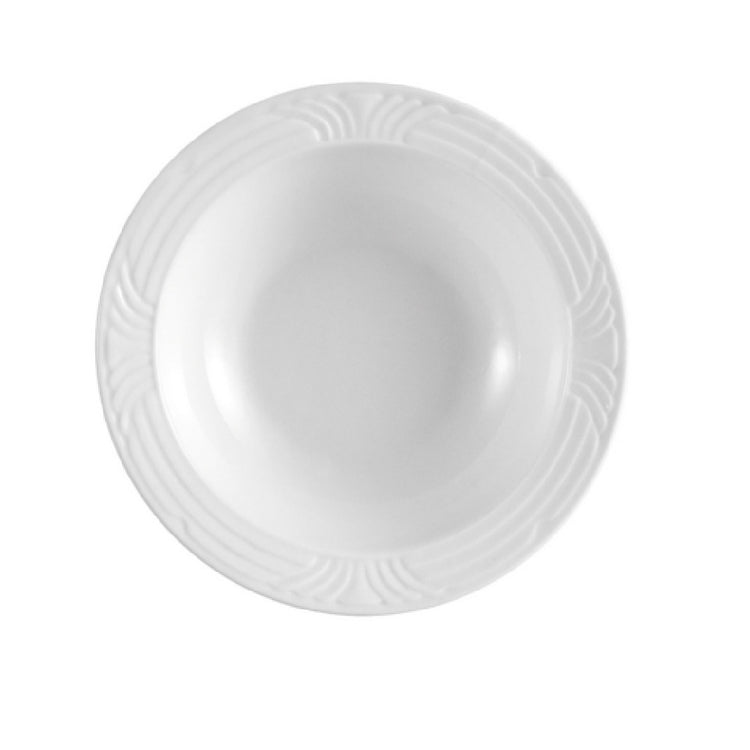 The CAC China CRO-10 Corona Grapefruit Bowl is a high-quality, versatile bowl designed for various dining and hospitality settings. With a capacity of 9-1/2 ounces, this bowl is perfectly sized for serving grapefruit, desserts, or side dishes. Its dimensions are 6-1/2 inches in diameter and 1-3/4 inches in height, providing ample space while maintaining an elegant presentation. Made from Super White porcelain, the bowl features a round, embossed design that adds a touch of sophistication to any table setting. Compatible with modern conveniences, it is dishwasher, oven, and microwave safe, making it highly practical for both commercial and home use. Sold by the case, each case is packed with three dozen bowls, ensuring an economical solution for larger establishments such as restaurants, hotels, and catering services. The CAC China CRO-10 Corona Grapefruit Bowl combines aesthetic appeal with functional durability, making it a valuable choice for businesses seeking elegant yet resilient dining ware.