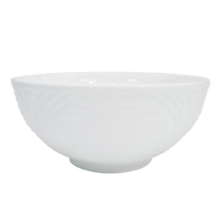 The CAC China CRO-15 Corona Nappie Bowl is a versatile dining piece with a capacity of 15 oz. and dimensions of 5-3/4 inches in diameter and 2-3/4 inches in height. This round bowl features an embossed design and is crafted from high-quality porcelain in a Super White finish, adding an elegant touch to any table setting. Designed for durability and convenience, it is safe for use in dishwashers, ovens, and microwaves, making it a practical choice for both commercial and home kitchens. Sold by the case, it is packed with 3 dozen bowls per case, offering a cost-effective solution for restaurants, catering services, and large family gatherings. The CAC China CRO-15 Corona Nappie Bowl's combination of aesthetic appeal and functional features makes it suitable for various market segments, including hospitality, food service, and home dining. Its sturdy construction ensures it withstands the rigors of everyday use, while its classic design complements a wide range of dining setups, from casual to formal occasions.
