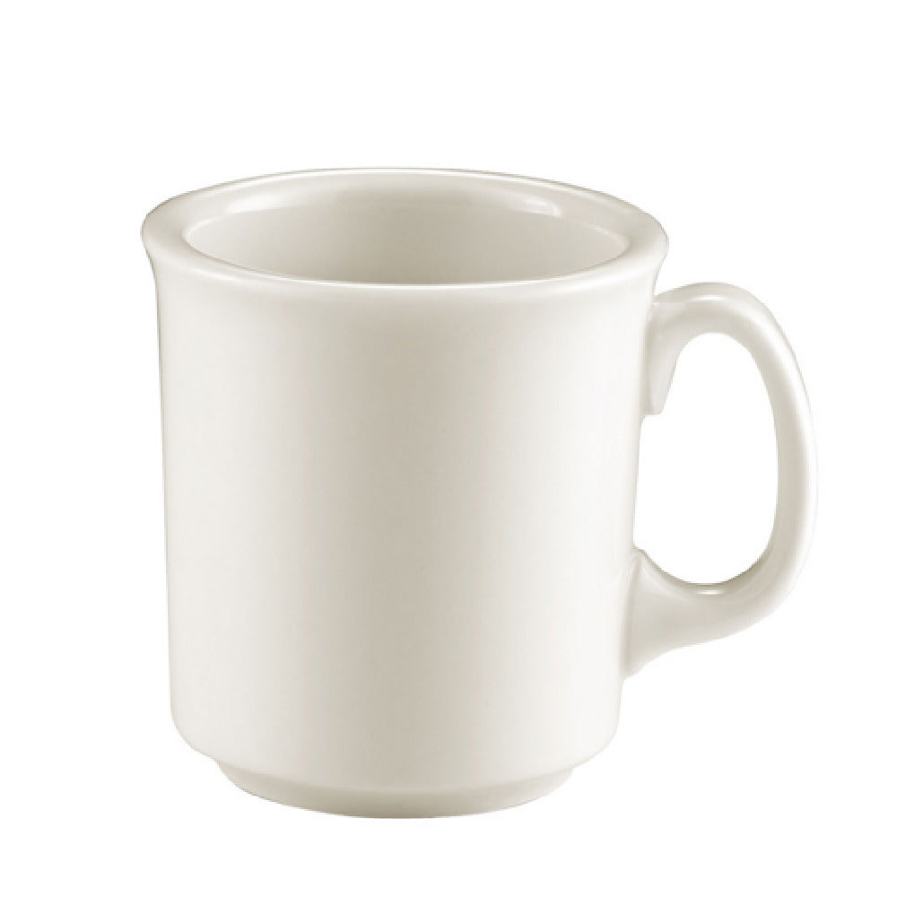The CAC China EDM-14-AW Eddie Mug Jumbo 14 Oz. is a versatile and robust stoneware ceramic mug, designed to cater to diverse needs in both personal and professional settings. With its generous 14-ounce capacity, this mug is ideal for enjoying larger servings of beverages, making it a perfect choice for cafes, restaurants, and home kitchens that value both form and function. Measuring 4 inches in diameter and 4 inches in height, the round shape of this mug ensures a comfortable grip and optimal heat retention. Its American White finish adds a classic and elegant touch, complementing various table settings and decor styles. The mug is dishwasher, oven, and microwave safe, offering convenience and ease of use in fast-paced environments. This durability and adaptability make it an excellent addition to any food service establishment or household. Sold by the case, with 3 dozen per case, the Eddie Mug is a cost-effective solution for businesses looking to stock quality drinkware in larger quantities. By combining practicality with style, the CAC China EDM-14-AW Eddie Mug Jumbo 14 Oz. delivers a reliable and appealing option for beverage service across different market segments.
